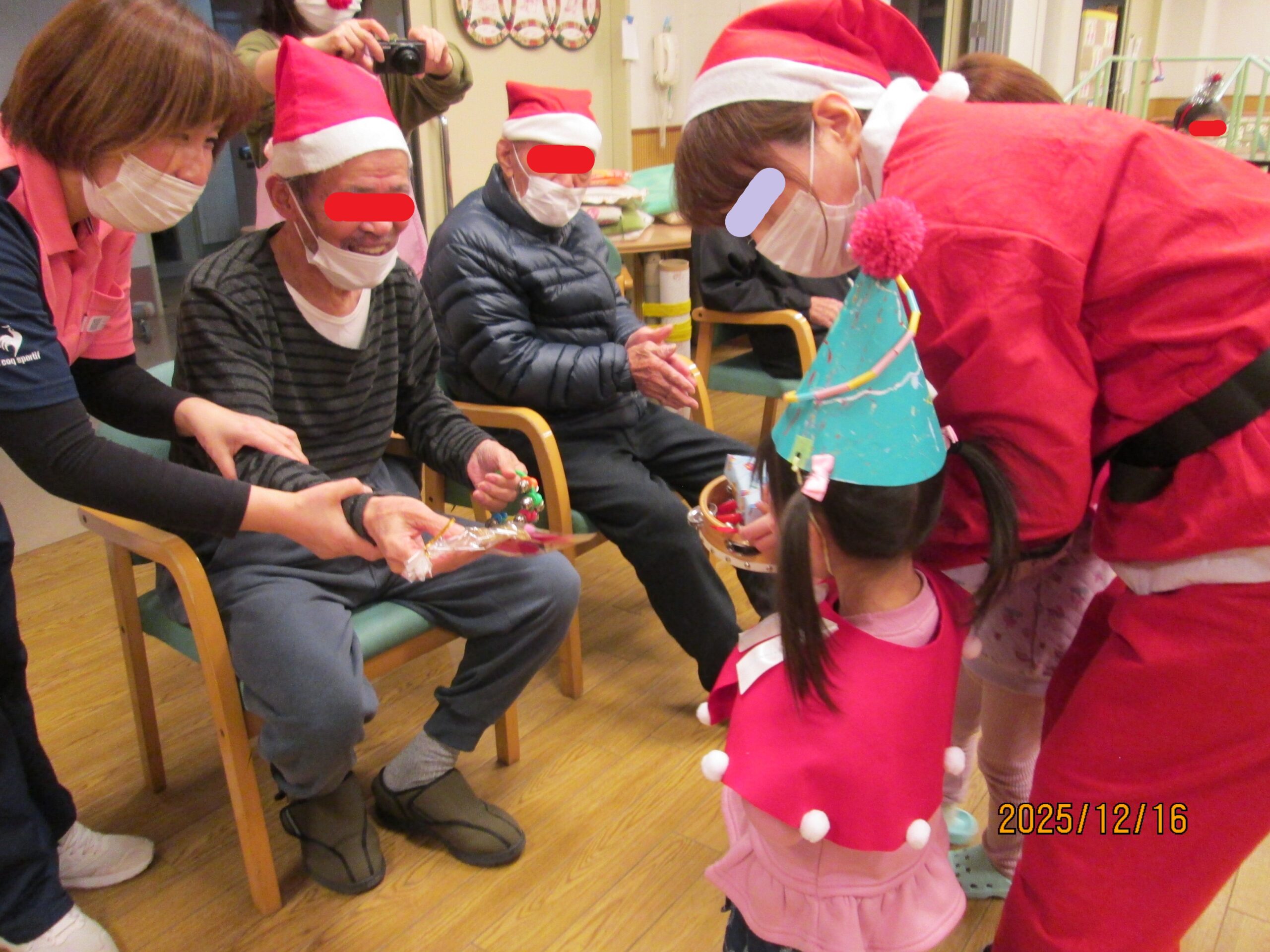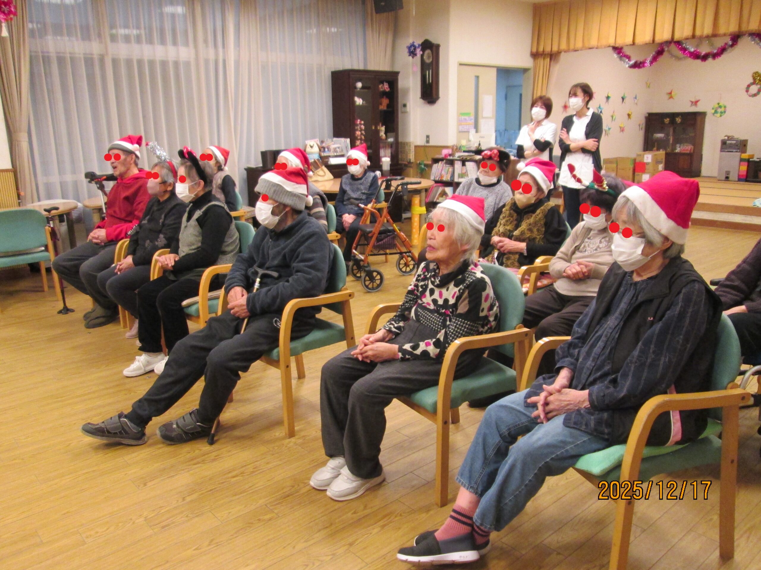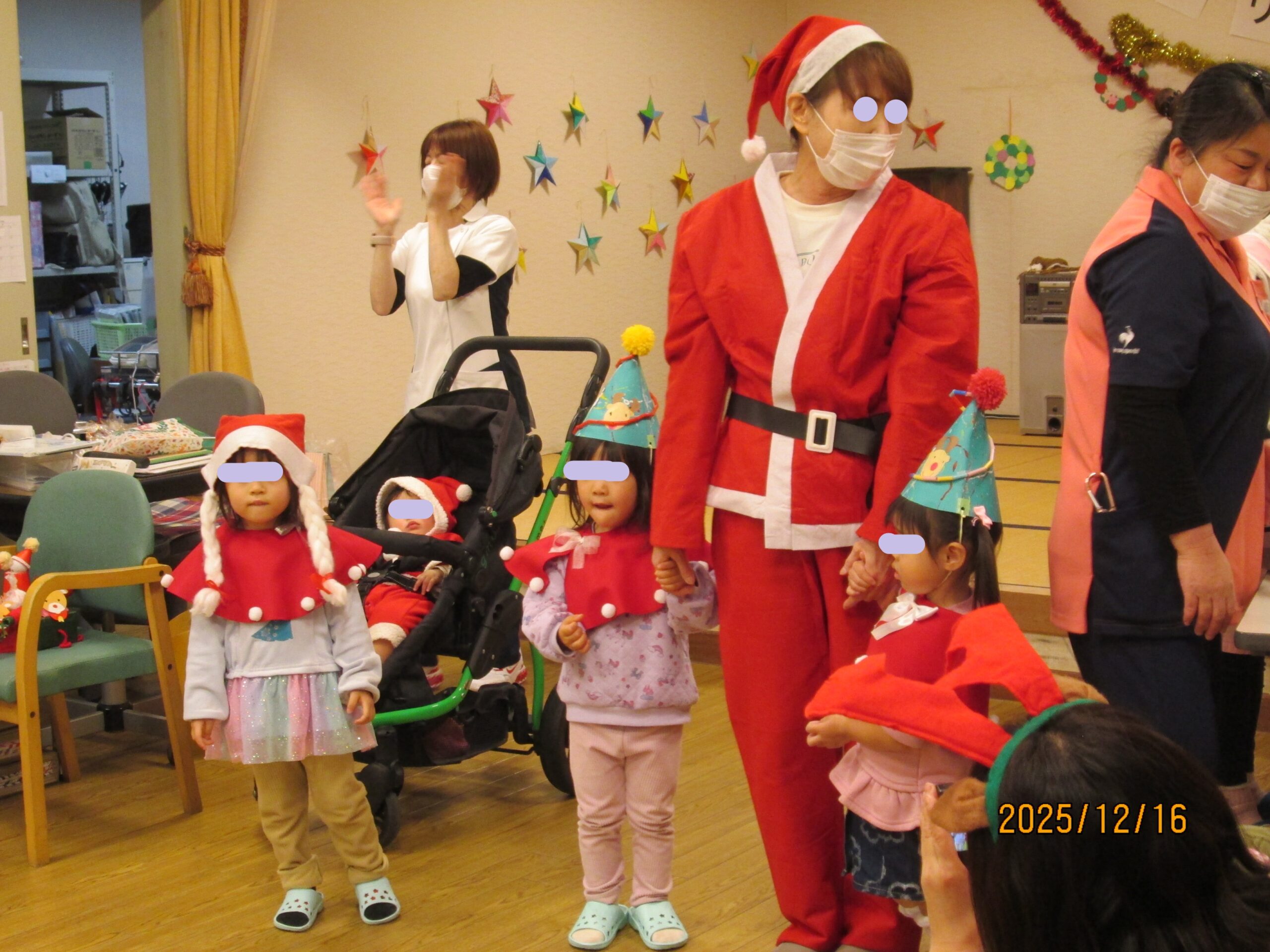 クリスマス会(デイケア) デイケア 2026.02.16 デイケアのクリスマス会の様子です。 院内保育所の子供たちも来てくれました。 園児たちが来てくれて、利用者様も嬉しそうにされていました。 リハビリ職員によるミュージックベルの演奏も楽しみました。