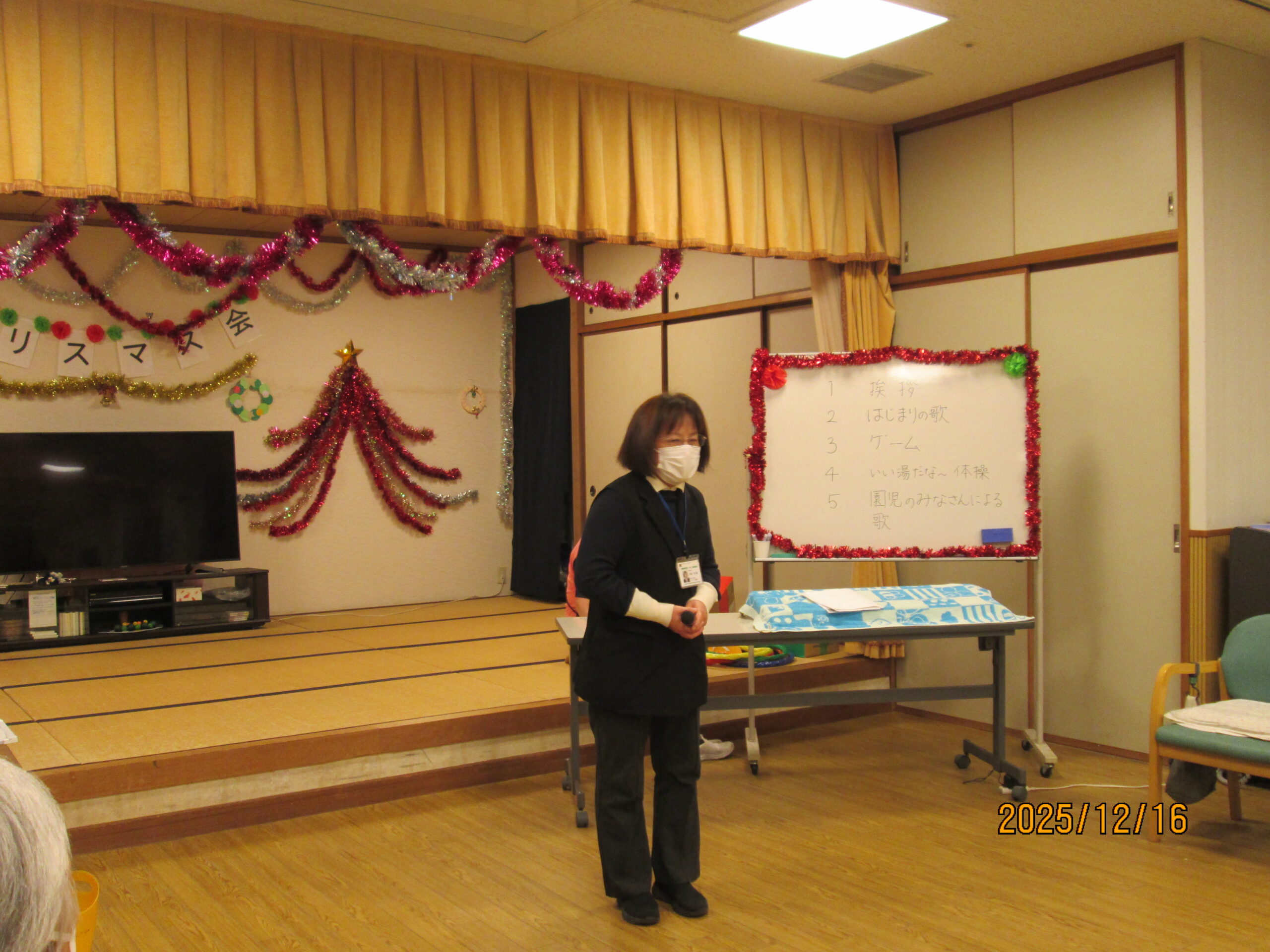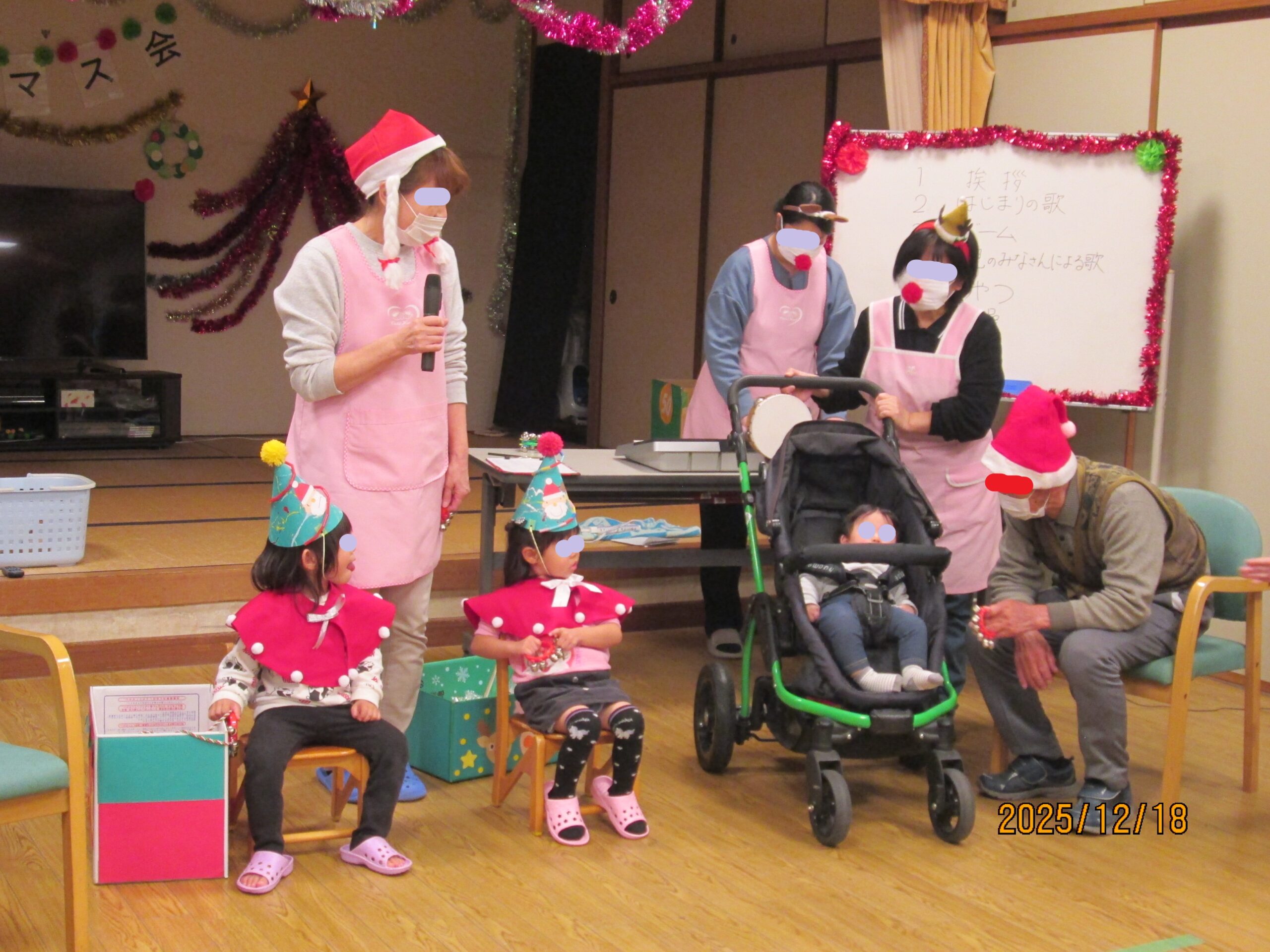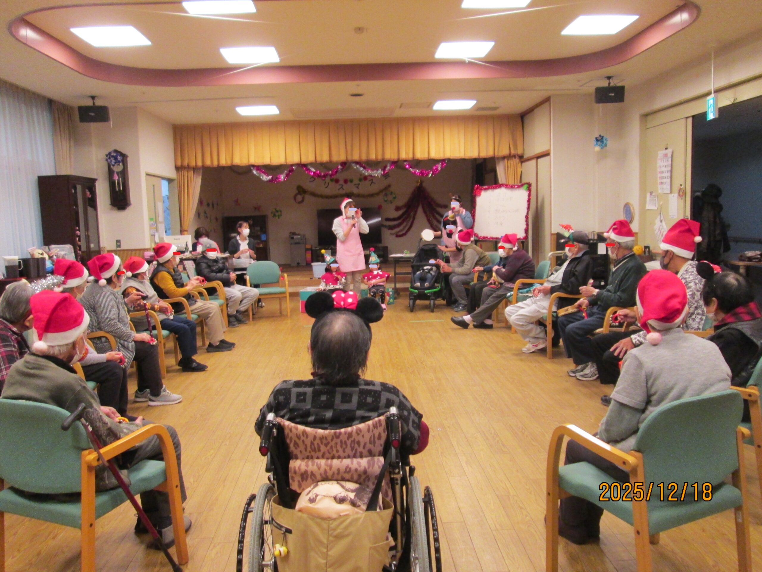 クリスマス会(デイケア) デイケア 2026.02.16 デイケアのクリスマス会の様子です。 院内保育所の子供たちも来てくれました。 園児たちが来てくれて、利用者様も嬉しそうにされていました。 リハビリ職員によるミュージックベルの演奏も楽しみました。