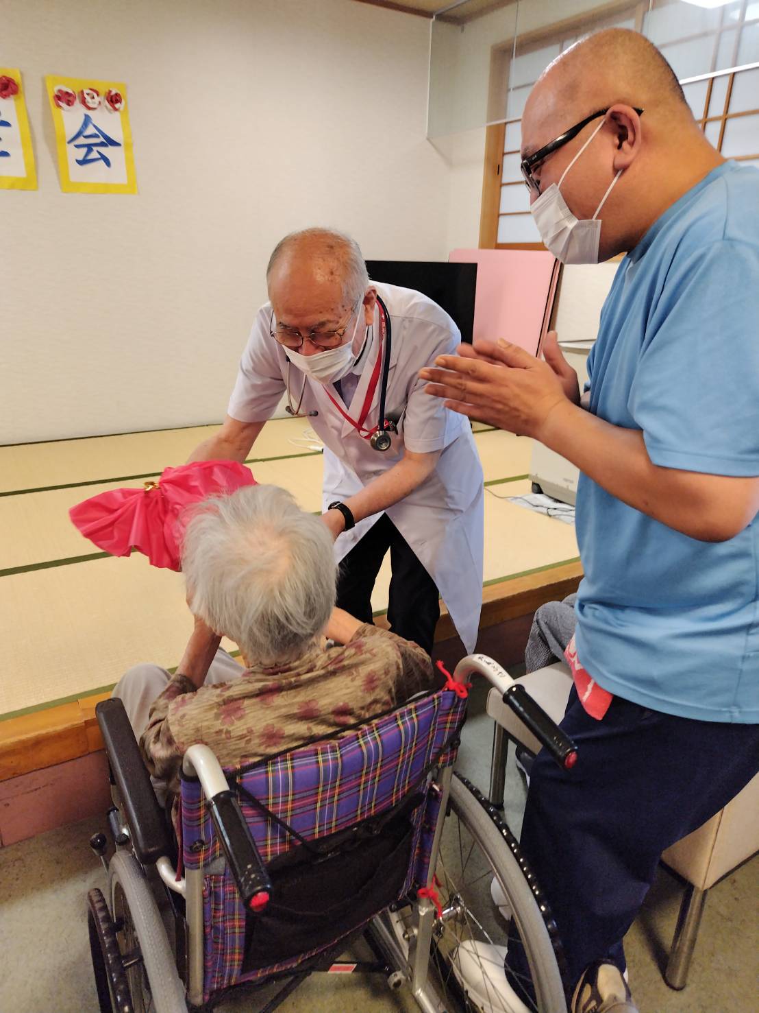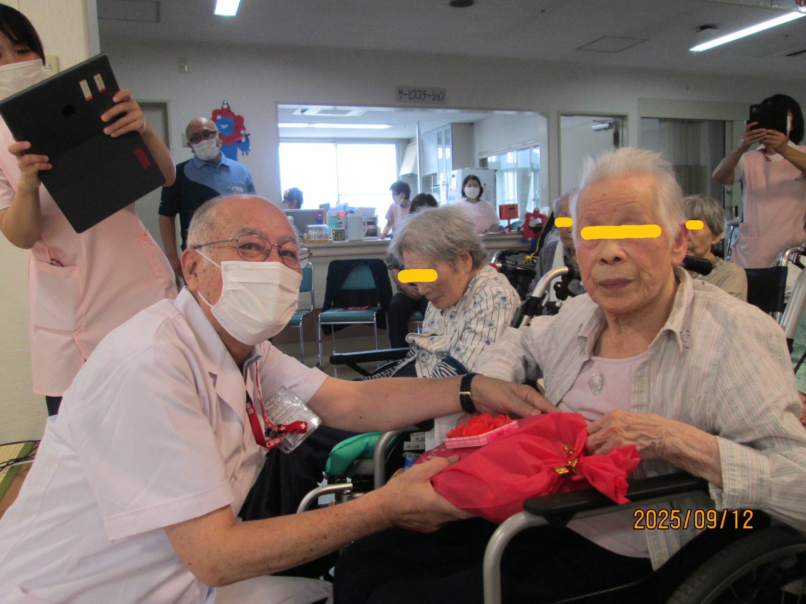 フロアごとに最年長の方にプレゼントを贈呈しました。