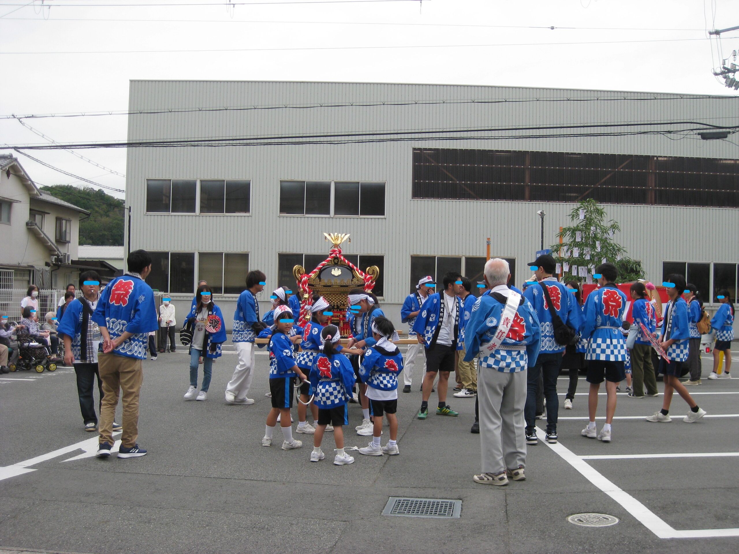 地元の神社の秋祭りで、お神輿がやってきました。